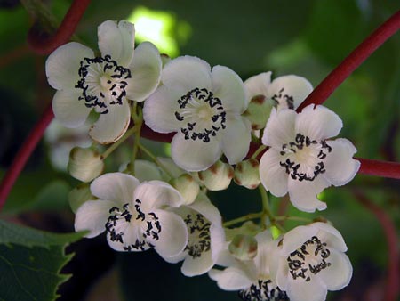 今、花が満開。雌雄の花があります。同じ仲間のサルナシと、同じ時期に咲くんですね。マタタビはどうかな?