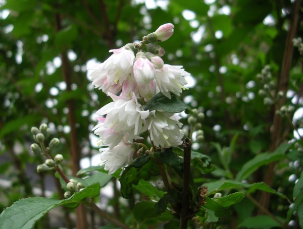 同じお宅のウツギです。八重だとも、ピンクが入ってるのも知りませんでした。ウツギの園芸種も結構あるのですね。