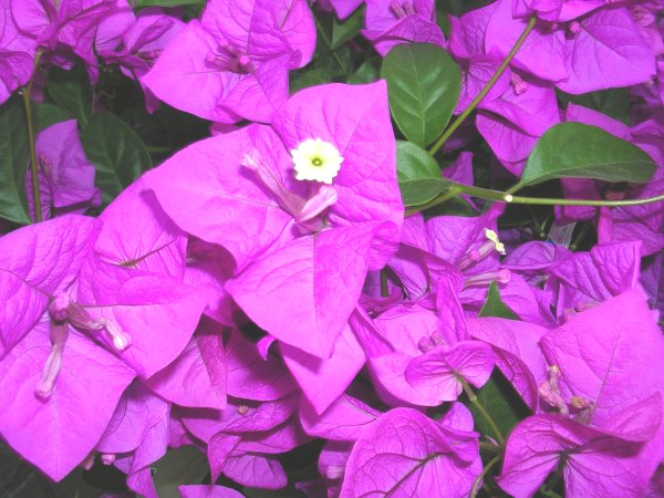 新カメラは、色がどぎつく出る(爆)ブーゲンビリアの花は真ん中の白いところ。あとは、葉っぱみたいなものなのです。