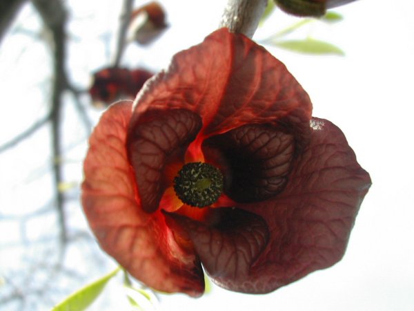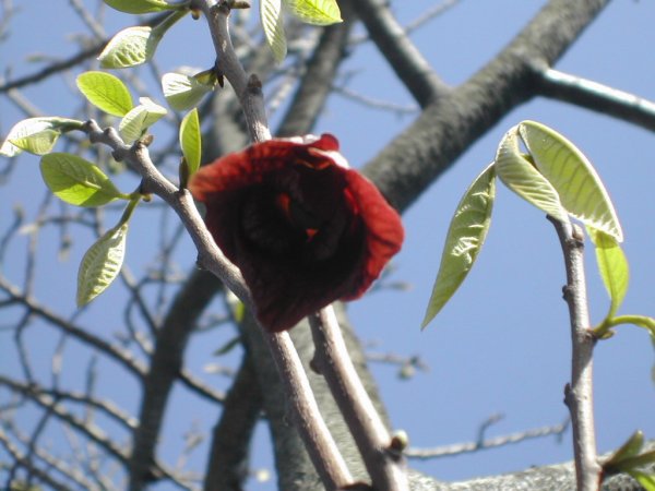 今日、結構な花着きを見て断然嬉しくなった。天気が良く逆光で黒い花、見難くてごめんなさい。
