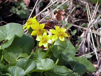 実はわたしも発見して「身近な野草」に相談をしていました。結論はリュウキンカ、もしくはヒメリュウキンカ。ヒメリュウキンカは今年、かなり園芸店に出回っていて三種は確実にあります。これはわたしが、大学の門近くで発見したもの。また、撮ってはいませんが酷似したものが、何件か隣にあります。ヨーロッパ経由で入っているということですが、こういうのは生態系に影響しないんですかね?