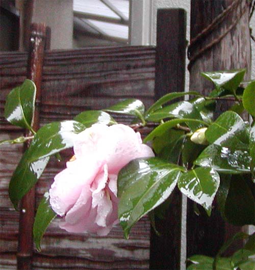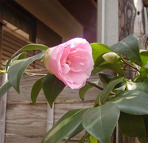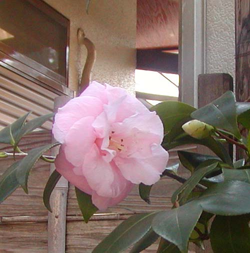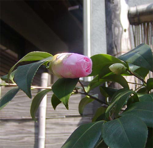 庭の椿の花がようやく咲きはじめました。
