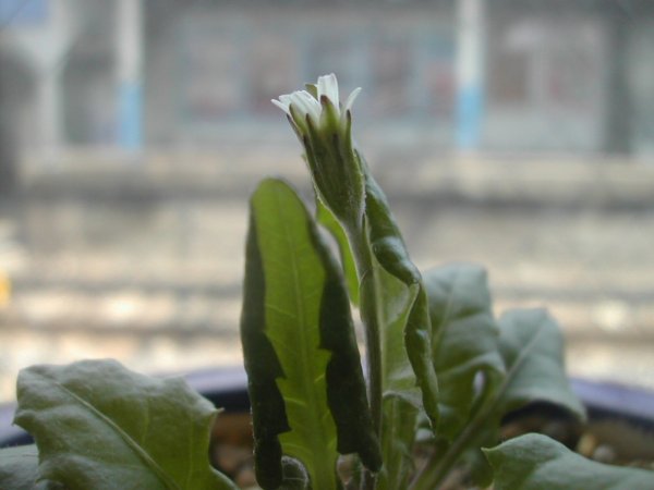 駅で枯れてしまったのだろうと思っていた、センボンヤリが花を持ち始めました。駅でも職場でもそういうところに生花を持っていくのは、枯らす覚悟が必要で一緒にあったダイモンジソウなどは、はや蒼息、吐息です。