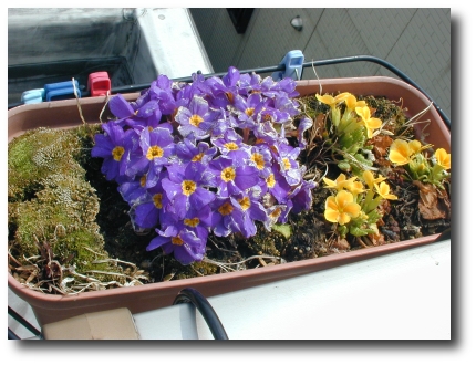 この写真はプリムラの鉢を日当たりがよすぎるところに移したため、どうもいつもの年と違う咲き方をしているところです。