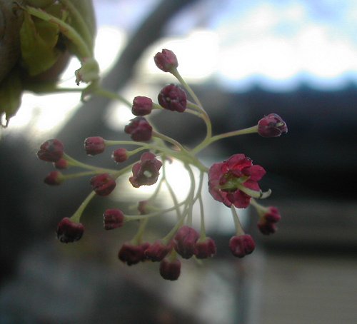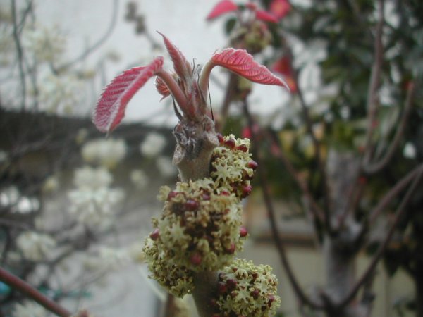 この赤い葉。これくらいのうちは、可愛いし綺麗。春にとても目立つ赤い葉です。でも、花はじっくり見ていなかった。