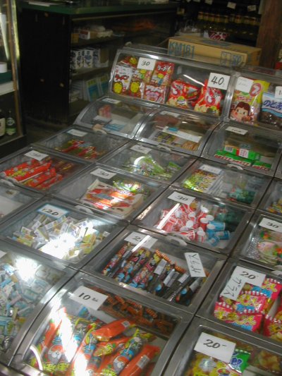普通のお店だと思って入っていったら、なんとなつかしい風景がありました。酒、タバコもあるんですが、このガラスケース!ポッキーとジュースを買って、仲良くなりつつある犬に少し分けました。「お前って騙されやすい奴だな」と言って。