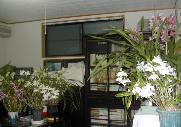 わたしの部屋ですが、母の育てたランで占領されています。階下の廊下、温室もいっぱいです。