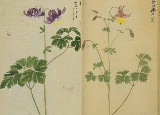 江戸時代に描かれた「オダマキ」二種、印刷技術がないので写本です。