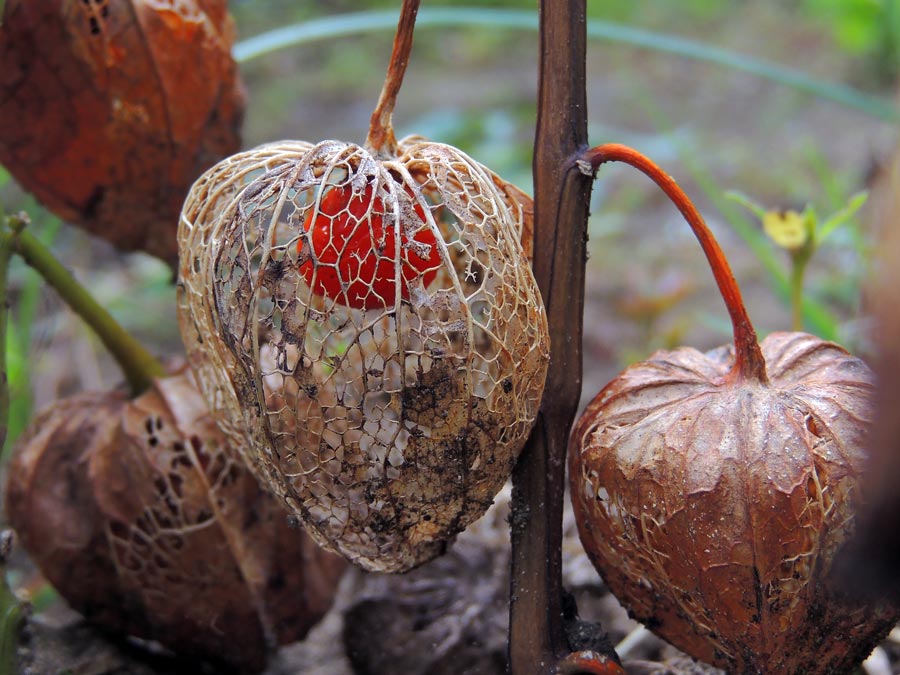 ホオズキ 赤く熟した実が覗いていました。