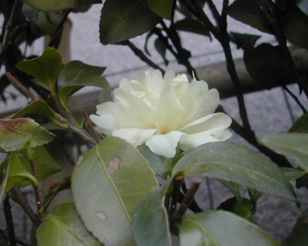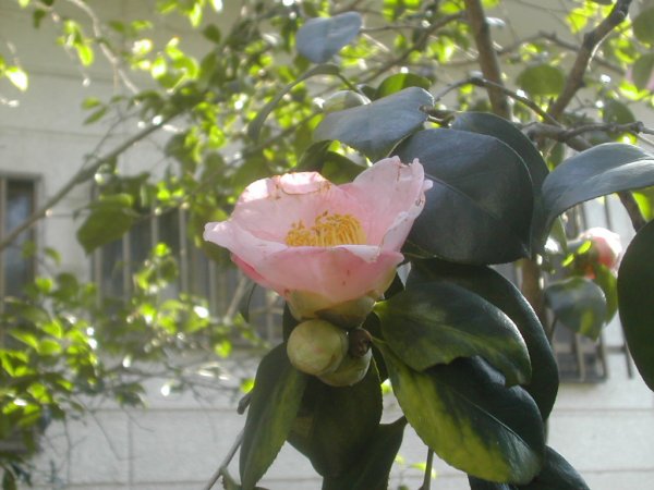 帰り道は必ずサザンカがお出迎えなのですが、道を変えてみた。ここは交通量の多い、車道に面しています。葉は結構汚れていたけど、花はこんなです。