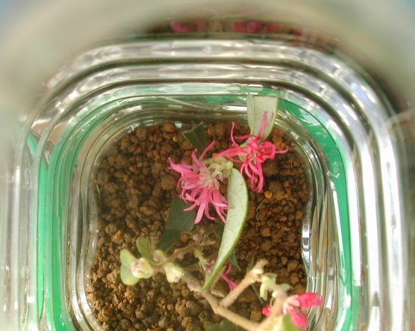 花の時期に少しだけ頂いて、挿し木をした「ベニバナマンサク」・・・・・なんと蕾を持って咲き出した。