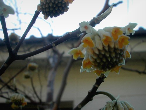 「ミツマタ」がきれいに咲いていました。ジンチョウゲと同じ仲間だと花を見ると判りますね。