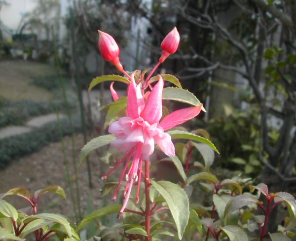 フクシアです。ヨーロッパでは人気があったらしく、いろいろな画が描かれています。これもちょっと変わった種。