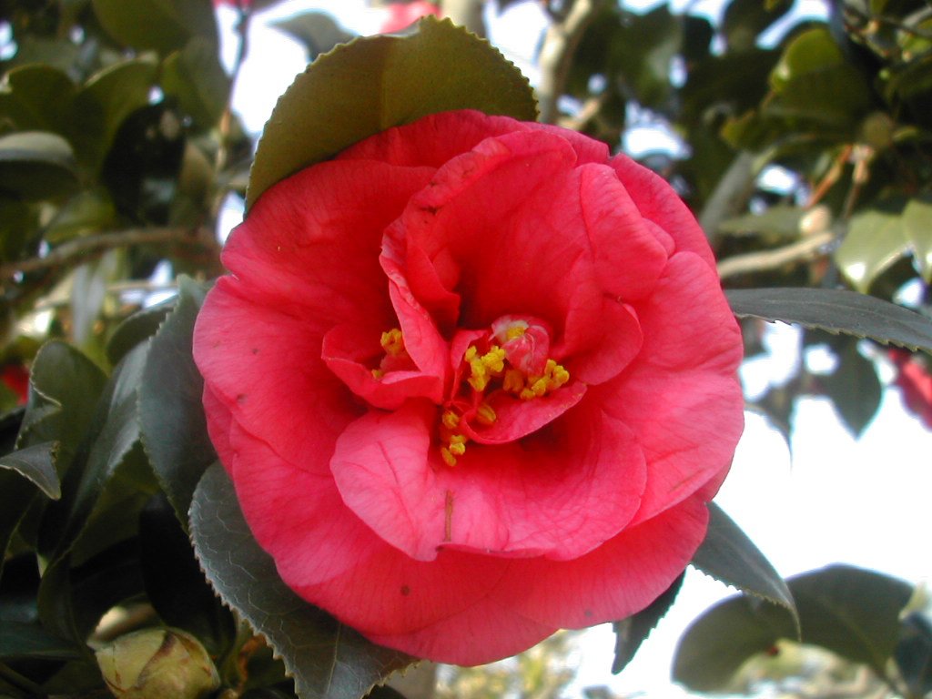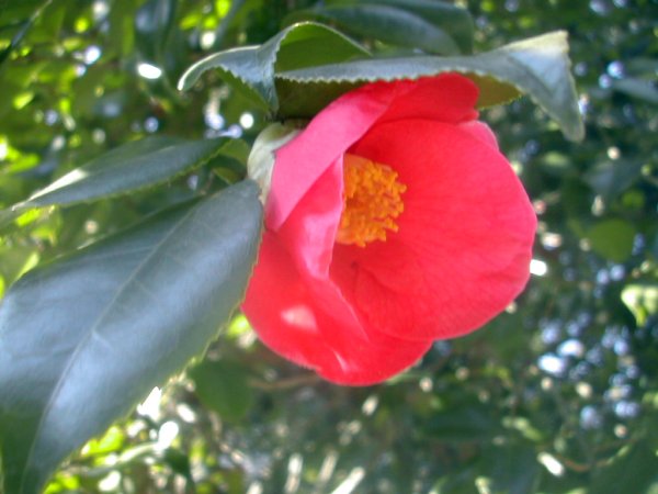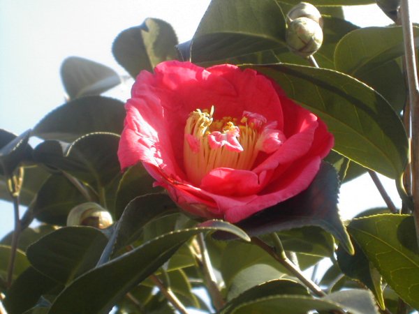 色めの少ない寒々とした冬の日に、鮮やか色彩を添える紅椿。