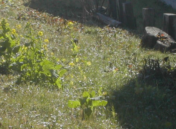 このお宅は庭に土盛りをしていた。やや高い位置にある柵の下からカメラを入れて撮った。その突き当りの部屋から声がしていた。どきどき。見逃すにはもったいない花でした。