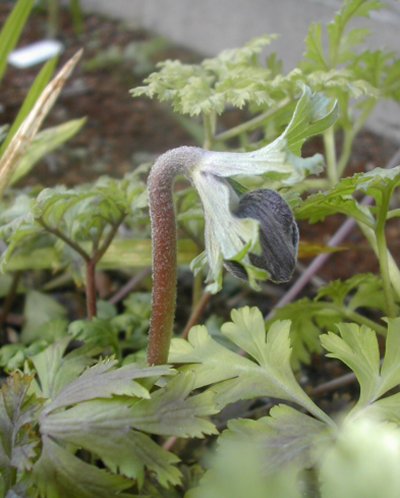 アネモネの首を、もたげていく形に似た花は結構あります。この姿が美人(笑)赤・青・白がありました。
