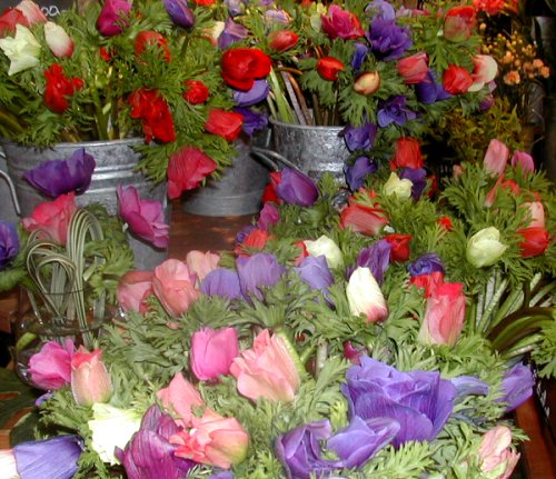 たいていの花屋さんは、写真を嫌がるのです。ここは新しい花屋さん。植木鉢いりの花はありません。生活感も土臭さもない。お客さんがすくなかったので、頑張って撮りました。