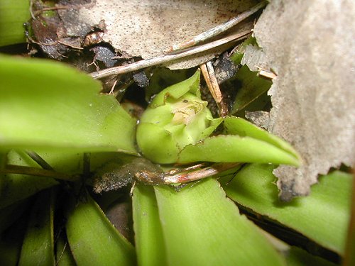 あまり日当たりはよくないのですが枯葉をどかすと、この株だけ花芽がついていました。ショウジョウは猩猩のようです。