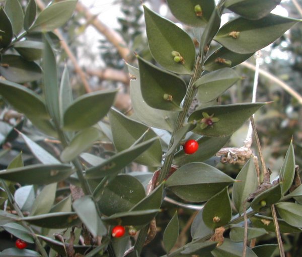 葉のように見えるところは実は枝の変形したもので、先にある尖ったところが葉だという。写真をごそごそ撮るのには、暗くて痛かったけれど、珍しいものの発見は嬉しい。