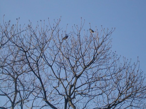 行ってみると、紅葉の葉も実もありませんでした。実はロウをとったというとおり、鳥にとっては貴重な蛋白源。でも、早すぎです。ヒヨドリがもう、群れになっているので襲撃されたのかな? (とまっているのはヒヨドリです。)