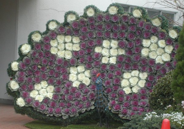 近所の幼稚園のハボタン。なんでクジャクなのかが気になる。