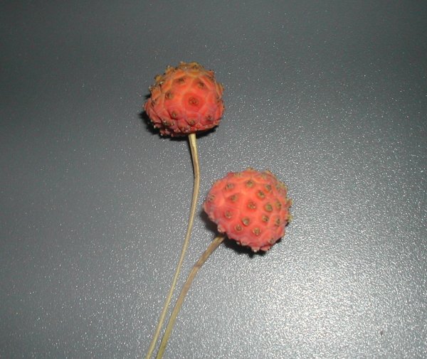 このなかに実がありそうなのですが、この大きさで鳥に食べられるかなぁ。やはり地に落ちて、転がっても止まるように・・・。すると、斜面などが多いところ向け?実は甘酸っぱいらしく、蟻にというしかけ。