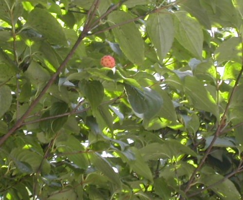 ワシントンDCから桜と交換した「アメリカハナミズキ」におされて辛い(?)立場だったのですが、最近はそうでもなくなりました。古い庭の広い家には案外植わっていて、一軒で三本もある家がありました。花弁のとんがっているのが、ヤマボウシです。実はこのとおり。