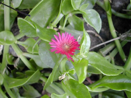 ハナヅルソウは南アフリカ原産の常緑多年草。マツバギクより小さい。暑さには強そうだ。