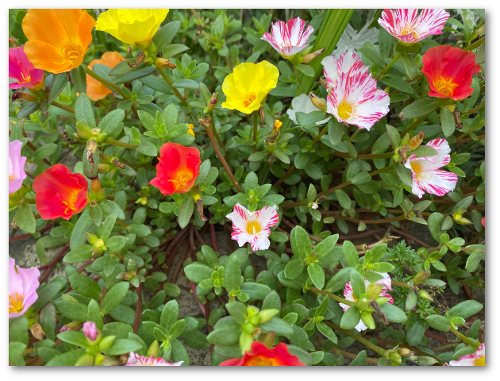 ポーチュラカのような花が、やっと直射日光に当たって元気に見えます。