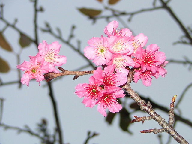 那覇のヒカンザクラは今が満開です。北部ではもう終わって緑の実がついているはず。