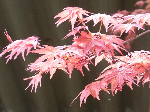 カエデははじめ赤くて、次に緑色になるもの、そのまま赤いものとあります。