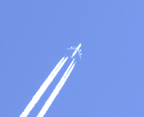 飛行機雲が見えたので、大きなサイズで撮って、部分を取り出してみた。
