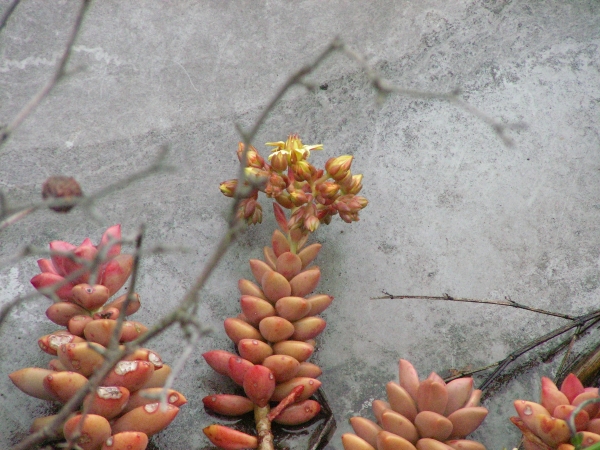 珍しく、おぼろ月という種類の多肉植物とともに花が咲きました。