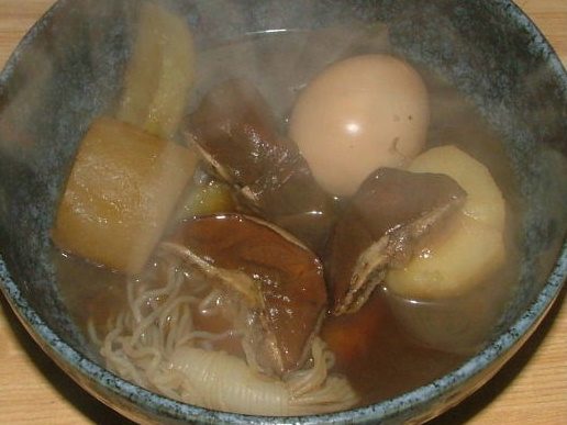 きのこもおでんの残りと一緒に煮しめて、