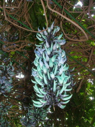 温室にはヒスイカズラがたくさん咲いていた。