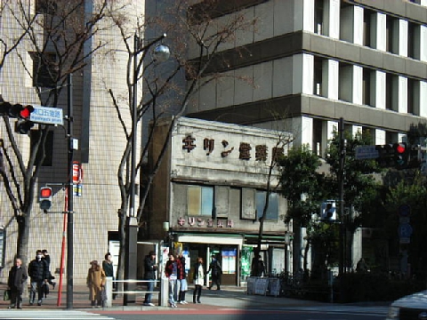 写真は池袋の繁華街にビルに挟まれてがんばるキリン堂薬局