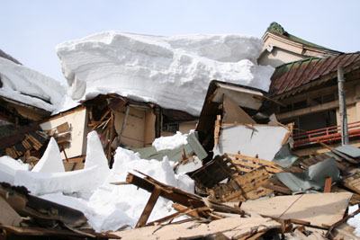 沖縄はもう春なのに、昨日訪ねた水上の奥では雪雪雪でした。おまけにこの家は壊れたのか、壊したのか・・・・