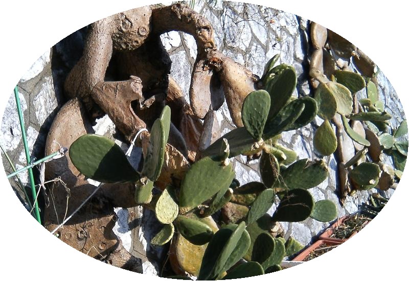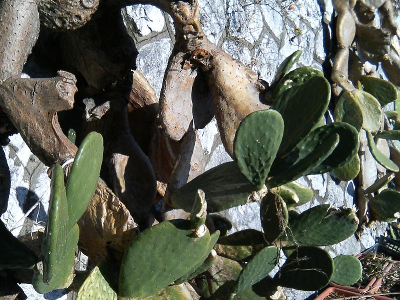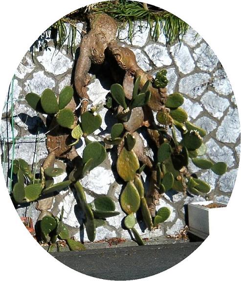 うちわサボテンは再生力が強くて、数センチ四方に切って地面に下ろすと、とげの部分から新しいうちわサボテンが出てきます。同じ原理でしょうけど、茶色い部分は古いサボテンの老化したものだと思います。
