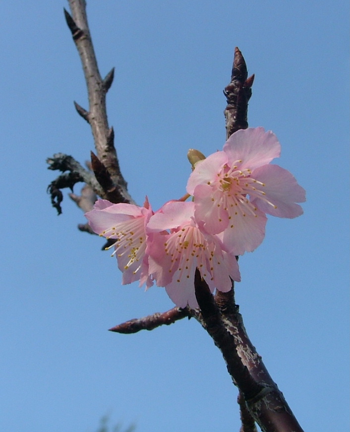 ヒカンザクラは盛りの頃にはもっと濃いピンクになりますよ。