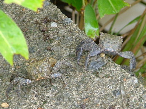 コンクリの歩道に上がってくるカニ。