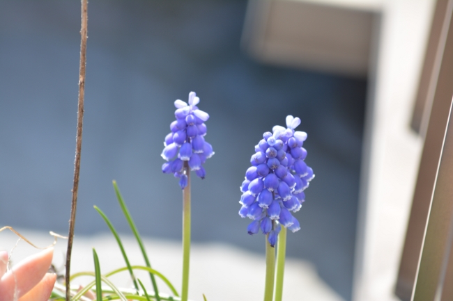 ようやくムスカリがちらほら咲きはじめた。