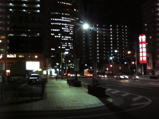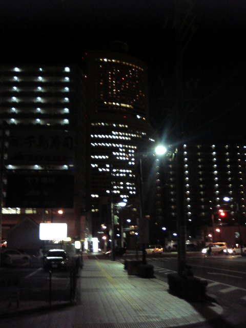 北側の広場から、夜のアクトシティ。北側から。ついいま7時半頃。