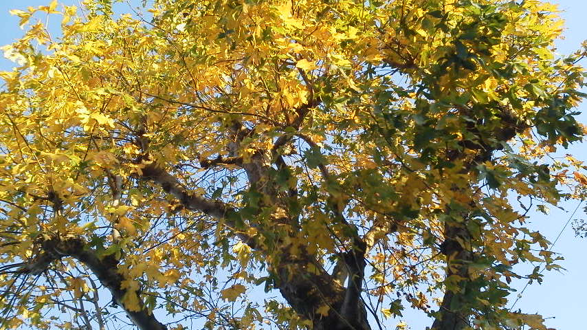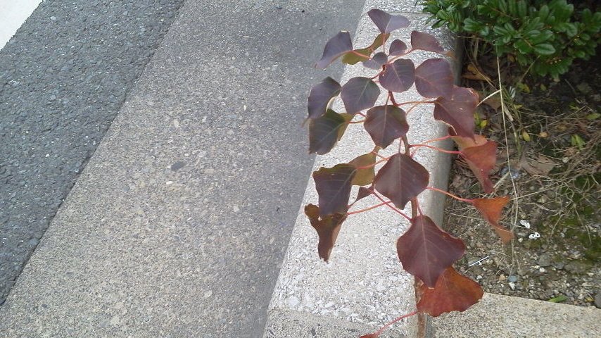 写真を撮ったのは一昨日になってしまったけど、本日もありました。紅葉を迎えているようです。この空間利用の幾何学的な姿も、なかなかです。
