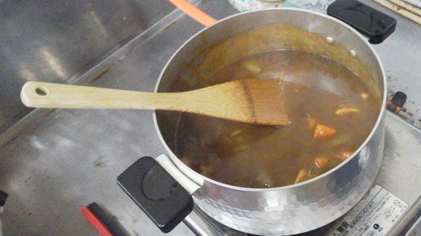 蕎麦が終わると元旦は雑煮のあとに、カレーです。moliharuカレーといって、ブイヨンのかわりに醤油味です。ソースが要りません。こういうことを特筆する分、普段の食生活が偲ばれます。いま、できたところ。これで3が日は楽勝です。