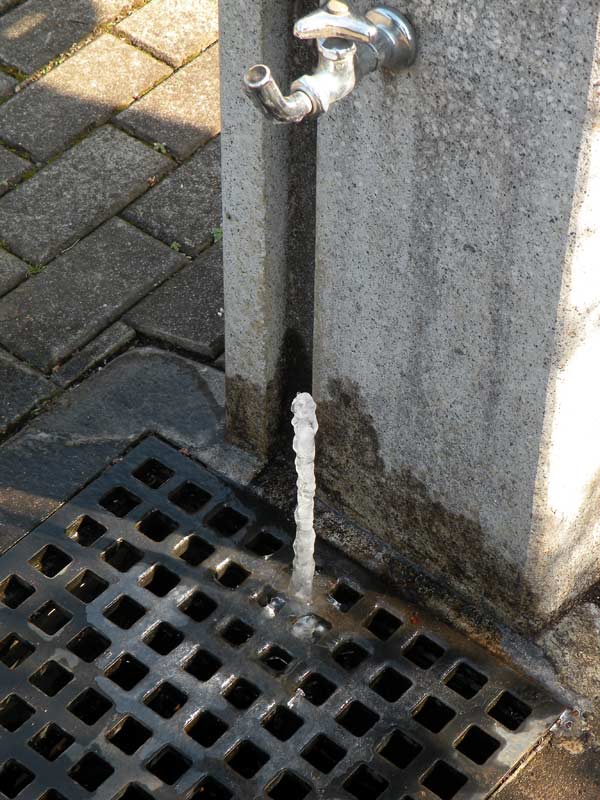 水道から漏れていた水が凍っていました。