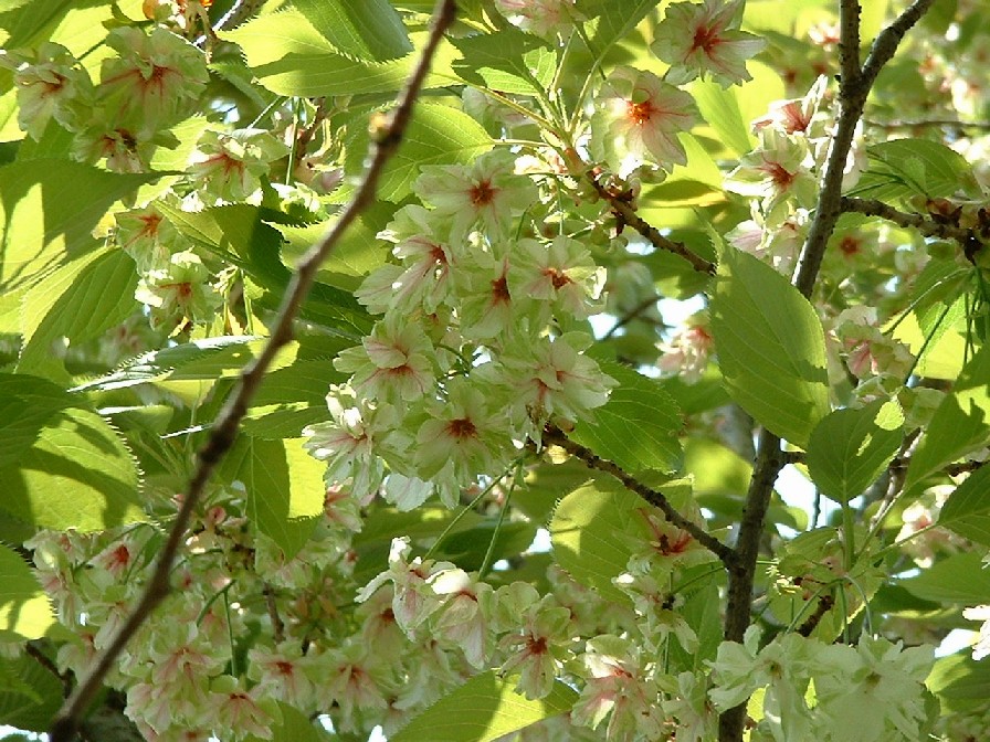 この桜は、盛りの時には、緑です。緑の桜 と言います。