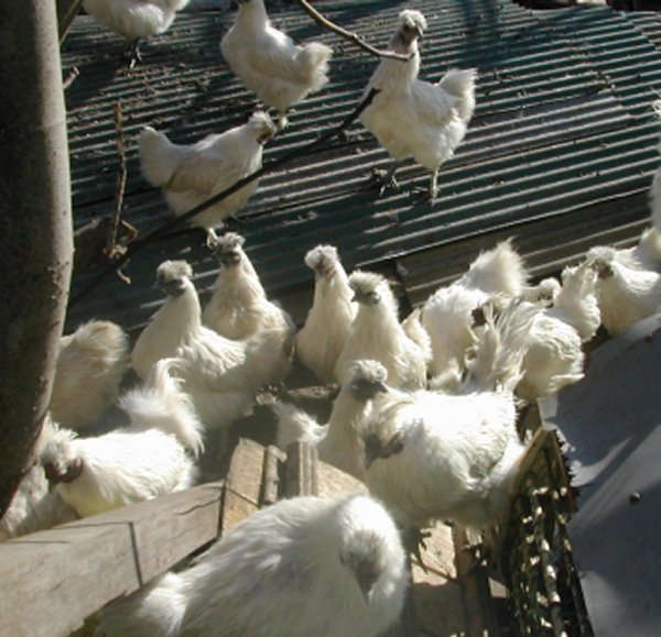 人が寄ると、とたんの下にいたのがぞろぞろ、ぞろぞろでてきます。このお家はちょっと周囲から見ると違和感がありますが、鶏糞の匂いはしません。