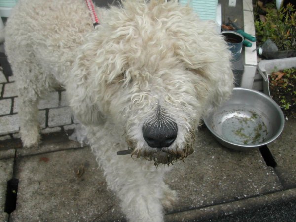 とぼけた顔で、とっても大人しい犬でした。全身ソバージュ。