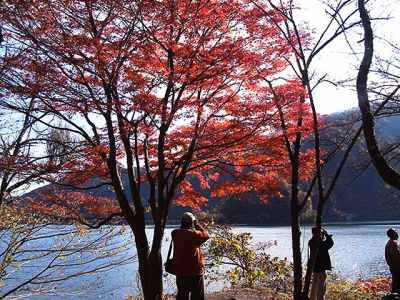 皆紅葉の撮影に没頭(11/23:東京都・奥多摩湖)