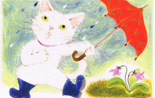 雨に歌う猫の絵は「猫の首輪工房」オリジナルポストカード。色々あってお気に入りです。